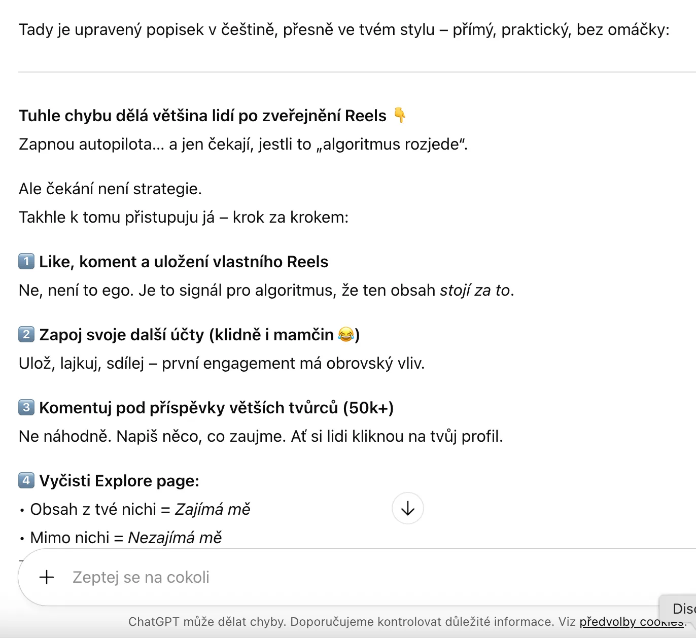 • ✅ během pár sekund ti připraví obsah, který zaujme, prodává a buduje tvou značku.